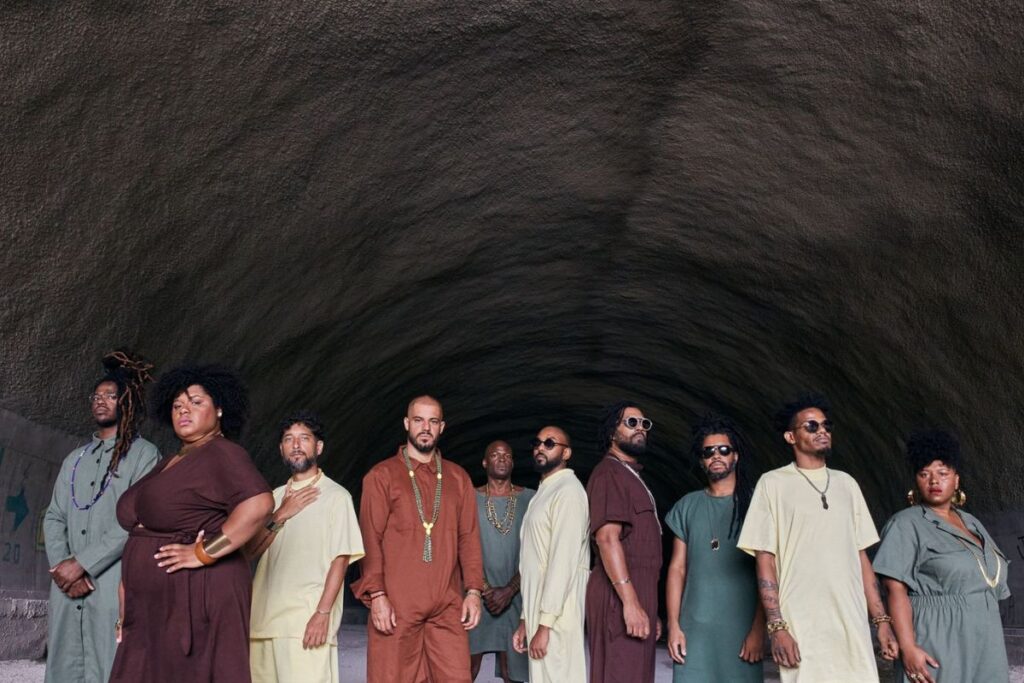 Moreira – Vocês me lembram muito o Yoùn, sabiam? Primeiro, pelo nome, pois Yoùn é uma palavra da língua crioula que significa “um só” e também é uma forma de olhar para o outro. O canto deles também e fruto de vivência em Igreja, aonde despertaram essa questão dos arranjos de vozes e da musicalidade. Isso é um baita elogio, pois o Yoùn é gigante demais, sou muito fã, e a entrevista deles foi uma das mais generosas da página. Como a vivência na Igreja influenciou a trajetória de vocês? E esse conceito de irmandade é muito importante também na história que vocês contam. E o título do disco remete à escola comunitária na qual vocês estudaram na infância, chamada Pedras Vivas…Como essas lembranças entraram na história?