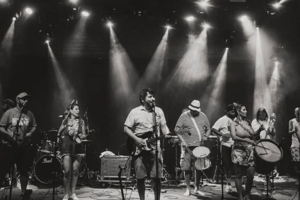 Moreira – Em 2022, vocês fizeram uma série de apresentações pelos EUA promovida pelo selo Swiminsoda, passando por Nova Iorque, Filadélfia e Los Angeles, quando gravaram o terceiro álbum, “Urubu Arrebata”. Como a música de vocês foi percebida pelos estrangeiros e como foi essa experiência de mostrar esse trabalho além-mar? A música é uma linguagem universal?