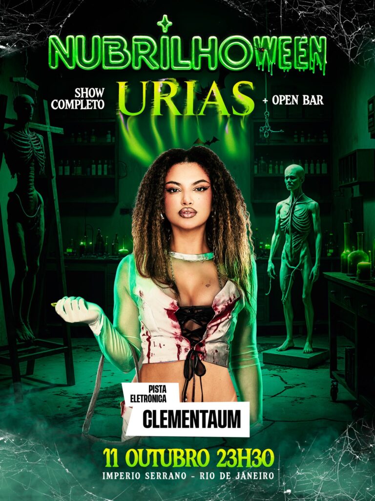 No Rio, o Nubrilhoween rola no sábado (11), às 23h, na quadra da Império Serrano, com um time pesado em duas pistas. A primeira tem show de Urias, lançando álbum novo, “Carranca”, com RaMemes, Claudinho, DJ Ingrid, Cindy, Lexxie e Luk Andrade. E ainda tem pista tribal com a maiorzona Clementaum, Van Muller, Rafael Rosa, Will Capitão, Nathalia Filgueira e Toni+.