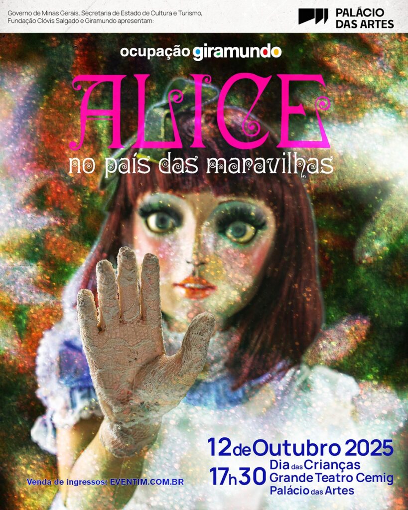 A companhia Giramundo celebra 55 anos com a “Ocupação Giramundo”, no Palácio das Artes, com a exposição inédita “Bonecos Giramundo”, que abre no sábado (11), com atividades educativas na PQNA Galeria Pedro Moraleida, uma mostra de cinema, o espetáculo “Alice no País das Maravilhas” e visitas guiadas. A mostra fica em cartaz até 22 de fevereiro de 2026, com eventos gratuitos, com exceção do espetáculo “Alice no país das maravilhas”, no domingo (12), às 17h30, que tem ingressos a partir de R$20.
