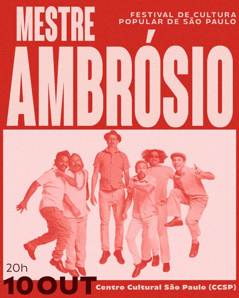 São Paulo – Clássico recifense do mangue bit, a Mestre Ambrósio faz show nesta sexta (10), às 20h, no Festival de Cultura Popular no Centro Cultural São Paulo, seguido de set do DJ Dolores. No sábado (11), às 19h, tem aniversário de Tom Zé.