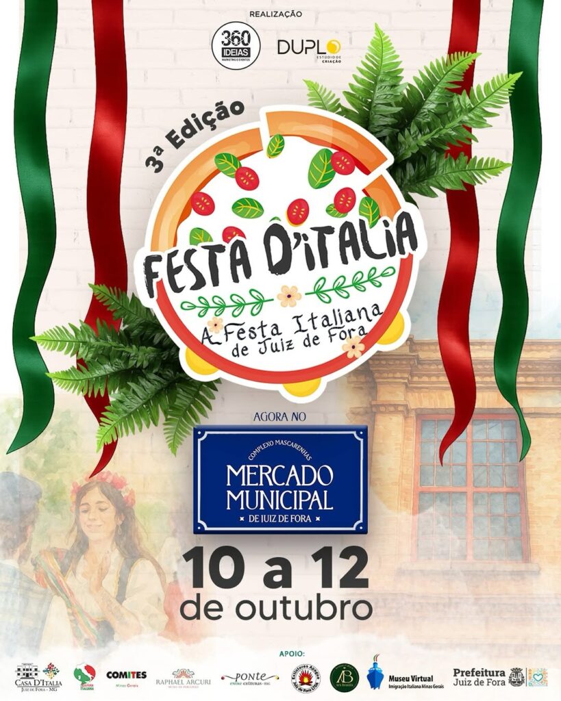 A 3ª edição da Festa D´Itália acontece no Mercado Municipal de Juiz de Fora, de sexta (10) a domingo (12). Entrada franga 🐔