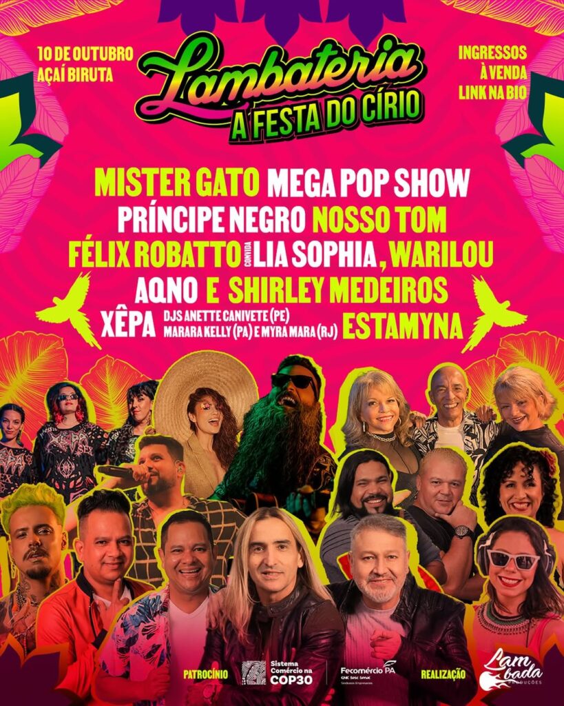 Belém – A Lambateria, do exímio guitarreiro Félix Robatto, que aparece com sua barba bíblica on steroids em “Rock doido”, de Gaby Amarantos, faz edição especial do Círio, no Açaí Biruta, às 20h, festa que já virou uma tradição paraense. 🌺 A festa mais dançante do Círio tem guitarrada, lambada, tecnobrega, brega saudade, carimbó, pagode amazônico e cumbia até o sol raiar com Mister Gato, Mega Pop Show, Príncipe Negro, Nosso Tom, o barbudo convida Lia Sophia, Warilou, o sextante Aqno e Shirley Medeiros, com discotecagem de Xêpa e Estamyna.💃🌛