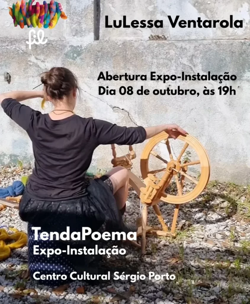 Rio – Minha amiga da escola primária Lu Lessa Ventarola, que já sextou aqui lindamente com seu “Caderno de belezas mínimas”, abre exposição, a “TendaPoema”, no Espaço Cultural Sérgio Porto, até domingo (12), das 15h às 19h, em uma imersão de escrita, escuta e fiança. A artista quer ouvir memórias justas e compor, coletivamente, a Tenda, que fica em exibição até o dia 19. “Quero que a habitemos juntos”. A TendaPoema faz parte da programação do Festival Internacional Intercâmbio de Linguagens Fil, que comemora 22 anos, celebrando o Fio da memória.
